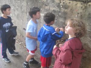The first time we did it was in February so we opted for the nearest mall as our scavenger hunt location, but in warmer weather we did it in our suburban downtown. We broke into teams of 4-5 kids– chaperoned by an adult– who toted clipboards with task lists, $5 petty cash, and a camera (or phone that takes photos.)